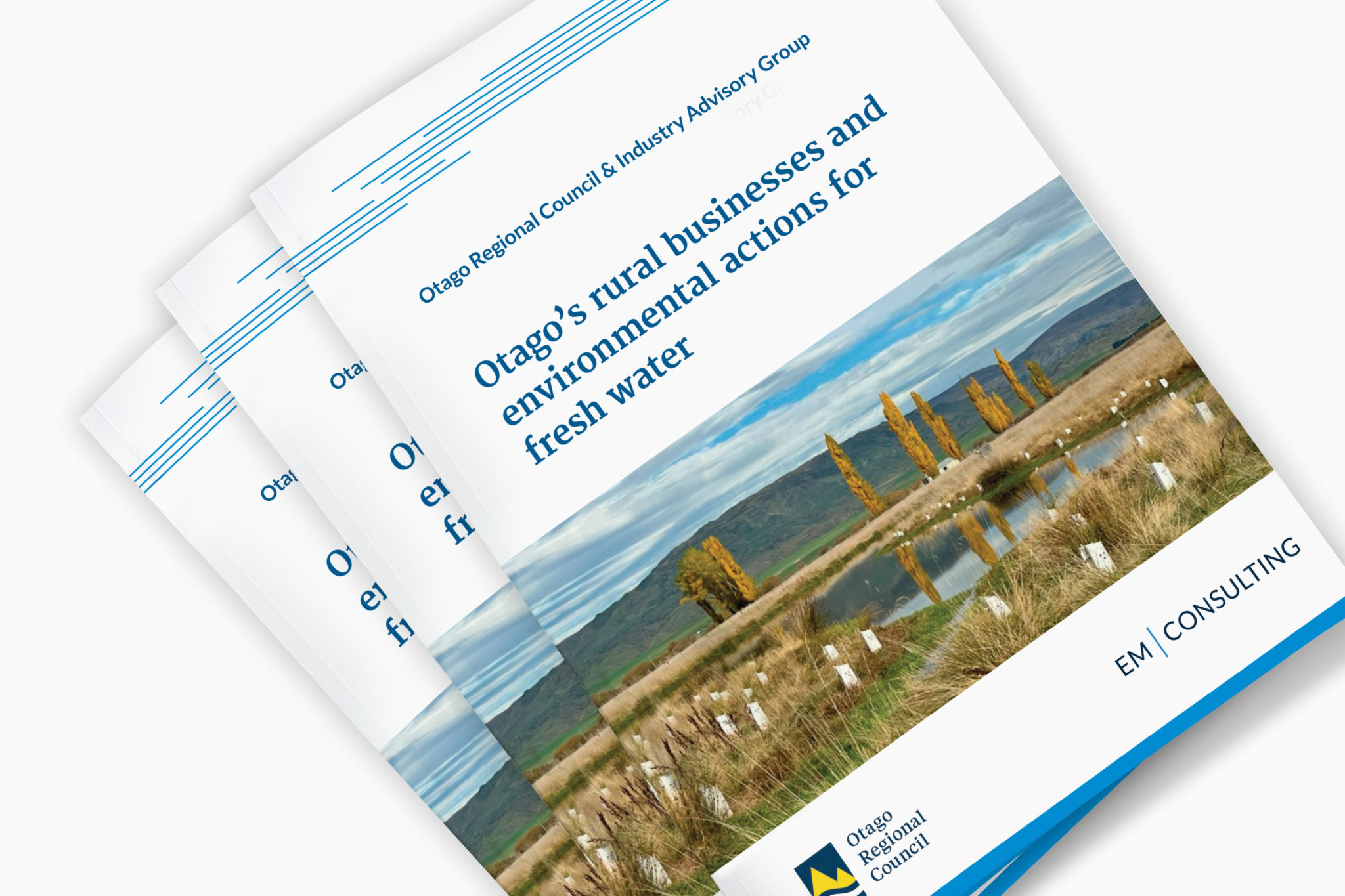 EM Consulting has worked with our team on a number of projects, and being a big fan of our work, Emma was keen to work with us again to deliver engaging, professionally designed and typeset environmental reports for her client, the Otago Regional Council. Emma, as EM Consulting, offers a broad range of environmental consultancy services and works with multiple councils and other environmental groups. She has a strong reputation for helping people find a way through complex problems, sitting firmly at the interface between economics, policy and science.
