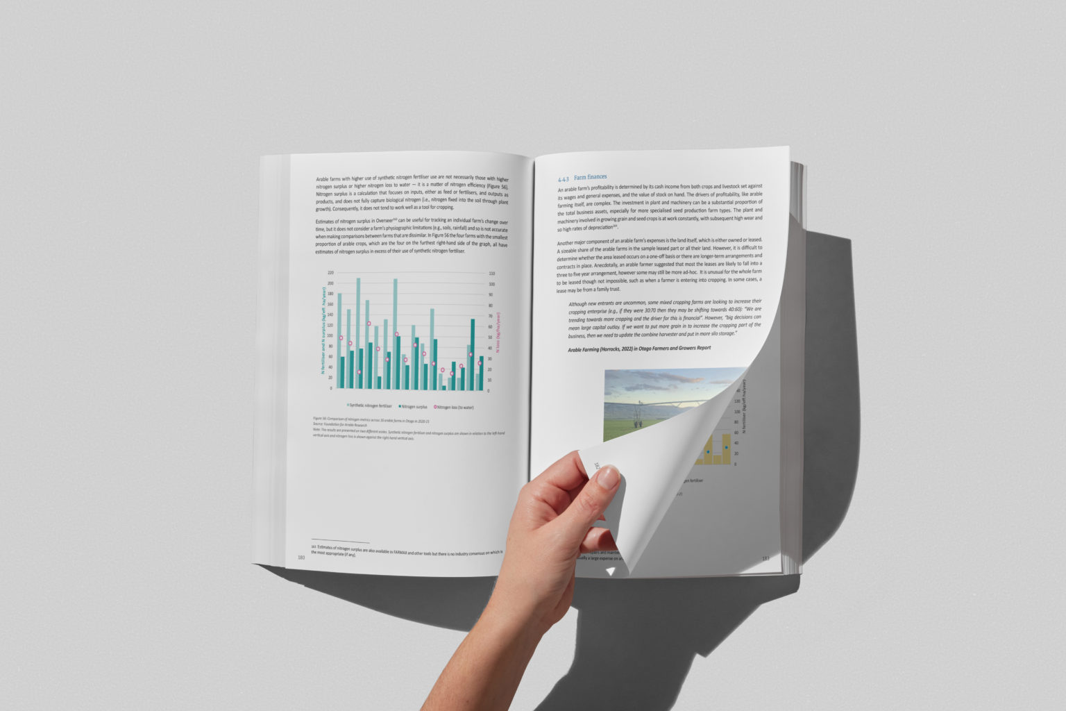 There were two reports required for this project. Part one, the Farmers and Growers in Otago report, consisted of 198 pages and part two, the Otago rural businesses and environmental actions for fresh water report, had 323 pages. The reports were designed to support the development of the Land and Water Regional Plan and the Economic Work Programme for Otago Regional Council. As informative reports, the design needed to be clear, consistent, and have a sharp attention to detail as all information had to be displayed and numbered perfectly. The design also needed to be flexible and easy to use as the design would need to be carried through to each new report we work on with EM Consulting.
